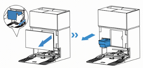 1.Remove the cleaning solution tanks' cover, take out the heavy-duty cleaning solution tank, fill it with ECOVACS heavy-duty cleaning solution, then close the lid and place it back into the station.