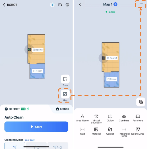 2. If the initially saved map does not meet your needs, you can delete the map and create a new one.