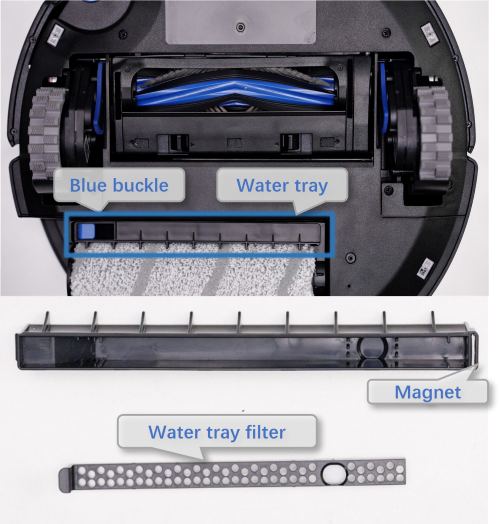 Note: If flipping the robot to install, remove the dirty water box first to prevent leaks.