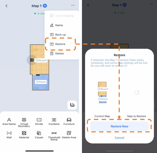 1. Enter the app, go to Map Management, select Restore Map, and restore the map to its initial saved version. Continue using the map.