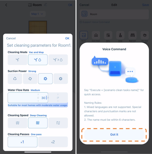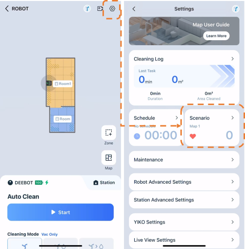 3.Can add default scenarios, such as "Daily Clean/Deep Clean/..." directly on the page