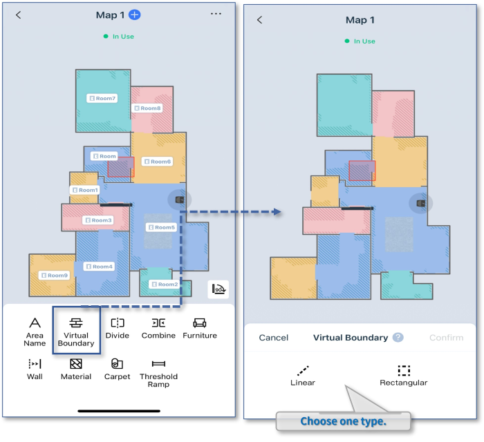 2. Select ‘Line’ or “Rectangle” to determine the location of the virtual wall.